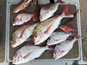 | 久々の御来船のH様御一行にて鯛ラバで出船! 前半戦下げ潮…サバフグ猛攻もあり…なかなか良い所探して差し上げられず。…(-_-;) 後半戦上げ潮…型見たエリア中心にジックリ狙っていると…時合い有り…バタバタとヒット&ゲット! 真鯛8・キビレ・ホウボウ10・太刀魚2・サバフグ多数。他本命惜しいバレ有り。 H様御一行の皆様…途中雨降る中、頑張って頂き有り難う御座いました。また宜しくお願い致します。m(_ _)m 鯛ラバ…秋らしいポイントで…釣れ始めました。涼しくなるにつれ…落ちの真鯛狙いのハイシーズンへ!(・o・) ![]() ![]() ![]() ![]() |