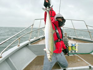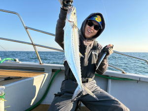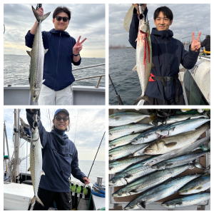| 予約乗合K様御一行3名様でサワラ狙いで出船! 前日よりいい加減?良い加減!?涼しい感じの陽気で期待して出船! 朝一帰り間際に単発跳ね見られましたが…あと少し良い所流して差し上げられてないのか…!? 近所の僚船では型見れている状況でしたが…当船はスッパリ切れ&バレで…残念ながら本命型見ず。 太刀魚のお土産だけで…傷心の帰港となってしましました。参加のK様御一行の皆様…有り難う御座いました。 |