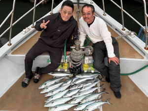 | =年末年始空き状況= 年末…26(金)27(土)・年始… 2(金))空き! お休み取れた方…釣り納めor初め!で・・・遊びに来ませんか? お早めの御予約をお願い致します。m(_ _)m 空き日詳細は予約状況のページをご覧下さい。 =予約乗合募集状況= 29(月)烏賊ティップ和田式・30(火)青物&寒鰆・3(土)寒鰆青物&鯛ラバ・4(日)寒鰆青物&鯛ラバ・7(水)寒鰆青物&鯛ラバ・18(日)寒鰆&青物予約乗合参加者募集!他空き日予約乗合言い出しっぺ募集!御来船をお待ちしてます!・・・m(_ _)m 各種チャーター便・乗合言い出しっぺ募集! …空き日予約状況参照! オフショア便!…鯛ラバ・サワラ・青物・烏賊エギング・太刀魚等! ベイエリア便…シーバス・ロックフィッシュ・黒鯛・ショットガンアジ! 気心知れてるお仲間!・家族で・・・チャーター便ご予約!&少人数予約乗合の言いだしっぺ!・・・募集! ”海の風!にあたってリフレシュ!”・・・御予約・御来船お待ちしてます!・・・m(_ _)m オフショア便!…鯛ラバ・サワラ・青物・烏賊エギング・太刀魚・ ベイエリア便…シーバス・ロックフィッシュ・黒鯛・ショットガンアジ! 気心知れてるお仲間!・家族で・・・チャーター便ご予約!&少人数予約乗合の言いだしっぺ!・・・募集! ”海の風!にあたってリフレッシュ!”・・・御予約・御来船お待ちしてます!・・・m(_ _)m…空き日予約状況参照! =お知らせ2= 平成30年2月1日よりライフジャケット着用が義務化されました。ご持参でないお客様には… 船内装備品をお貸ししますが…ご自分のスタイルに合った”検定合格品”(桜マーク付き・TYPE A) を購入される事を…オススメ致します。詳しくは…こちら…国土交通省のHPをご覧下さい。http://www.mlit.go.jp/maritime/maritime_fr6_000018.html LINE@公式HPやってます!LINEご利用の方は…お友達の登録を宜しくお願い致します!… メニューの「友だち追加」で「ID検索」を選択、@srm5911h と入力して検索すると友だち追加できます。 =オフショア便土日祝の予約空き状況!= (土日祝のご予約はお早めに…!) 12月…27(土)…他平日空き! 1月…3(土)10(土)11(日)17(土)24(土)31(土)…他平日空き! 空き日詳細は予約状況のページをご覧下さい。 =予約乗合募集状況= 予約乗合言い出しっぺ!は…お一人でもお気軽に(ご連絡は募集期間3日前迄には…)お願い致します。 出船は3名で確定!チャーター入らなければ2名から出船!最大定員12名の所…8名迄に減員での出船! 予約乗合募集日詳細は”予約乗合”のページをご覧ください! =新型コロナウィルス対策について=(現在) ・ご来船予定の皆様におかれましては…体調万全で・ご事情が許せば…御来船頂ければと思いますが… 出船前…発熱・咳・喉の痛み等…体調に少しでも不安がある場合は…ご乗船をご遠慮下さい。 =当船で現状行っている取り組み=(現在) ・不特定のお客様がご乗船する予約乗合出船時…スペース確保の為8名に減員して出船させて頂いてます。 (ジョイマリン号の最大乗船旅客定員は12名です!) ・ゴミは各人お持ち帰りの上…適切に処分をお願い致します。 ・トイレ使用時前後・・・手指の消毒をお願い致します。運転席の横の扇風機の前にアルコール消毒液設置! ・チャーター便での出船時…幹事様におかれましては…同船者の健康状態には留意して頂き… 少しでも健康面で不安を感じる方がいましたら…無理をさせず…乗船をさせないで下さい。 チャーター人数に充たなくなる場合…まずは船長にご連絡下さい。臨機応変に対応致します。もし私の体調に不具合が出た場合は… 申し訳ありませんが…出船を中止とさせて頂きますので…事前にご了承下さいませ。・・・m(_ _)m