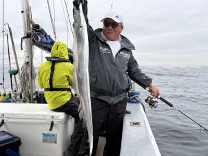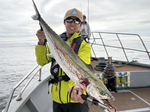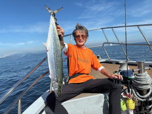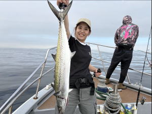 | 荒天中止続いちゃって…予約乗合ご常連さんお二人にてサワラ狙いで久々の出船! 前日スパーク!(・o・)したとの事で期待しましたが…サワラあるある?…本日…昨日の勢いは無い感じで…(-_-;) 後半心配された雨にもつかまっちゃって…本命3ヒットしましたが…バレちゃって…本命1本ゲット型見て… 他太刀魚・サバ・アジはコンスタントに釣れて…20ほどゲット!でお土は確保出来ました! 参加のお二人さん…何時も有り難う御座います。…m(_ _)m   湾内キャストでサワラの模様が出てきましたね!暑い日が続いてますが… 台風時化後…流石に秋の釣り物へ…!?…(^^;)… サワラ好きの皆さん!お早めの御来船お待ちしております。m(_ _)m |