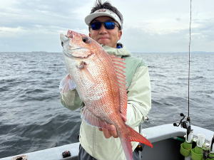 | 久々に乗り合わせたお三方で…予約乗合マゴチ&鯛ラバで出船! 春あるあるですが…水温上昇で表層の水色マッディー!&所々アブクの帯…(-_-;) 前半マゴチ狙って…7ヒットの5本!・後半鯛ラバで狙って…本命1枚…他惜しいバレ2。大アジ2・サバ 本日YさんDAY!?…マゴチ・真鯛・黒鯛・黒ムツ・カサゴ・サバ・ホウボウゲット! 参加のお三方…本日も和気藹々でやって頂き…有り難う御座いました。…m(_ _)m      |