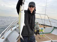 | 予約乗合K様御一行3名様でサワラ狙いで出船! 前日よりいい加減?良い加減!?涼しい感じの陽気で期待して出船! 朝一帰り間際に単発跳ね見られましたが…あと少し良い所流して差し上げられてないのか…!? 近所の僚船では型見れている状況でしたが…当船はスッパリ切れ&バレで…残念ながら本命型見ず。 太刀魚のお土産だけで…傷心の帰港となってしましました。参加のK様御一行の皆様…有り難う御座いました。 |