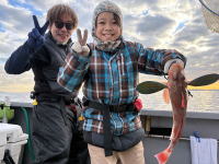 | Y様御一行チャーター便にて烏賊:鯛ラバ=8:2で狙いました! 烏賊ほぼ初挑戦との事で・・・胴付き仕掛けでモンゴウ狙ってみましたが・・・8ヒットの5杯! モンゴウ烏賊(”デンジャラスボム!?”)の取り扱い慣れていないと言う事で・・・写真は無し。(^^;) 上げ潮のこりの最後に潮止まりまで鯛ラバ狙って見ましたが・・残念ながらカサゴ・サバフグで・・・本命型見ず。 御予約時にお知らせさせている・・・タックル例・ルアー・仕掛けは実績の出ている物をお知らせしております。 近々で釣れている物なので・・・是非参考にして・・・ご準備下さい。・・・宜しくお願い致します。・・・m(_ _)m |